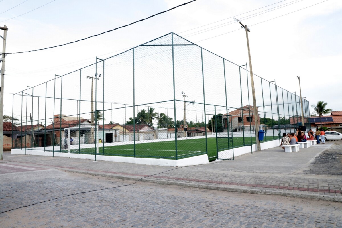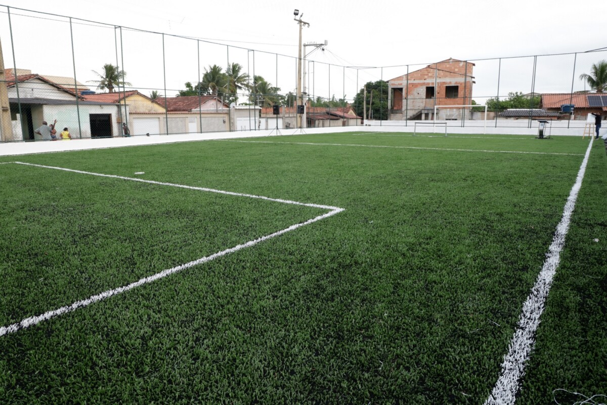 A quadra passou por uma revitalização completa, com a instalação de novo piso de grama sintética, sistema de iluminação, reforma dos alambrados e colocação de redes nas balizas, garantindo mais segurança e conforto para os usuários.