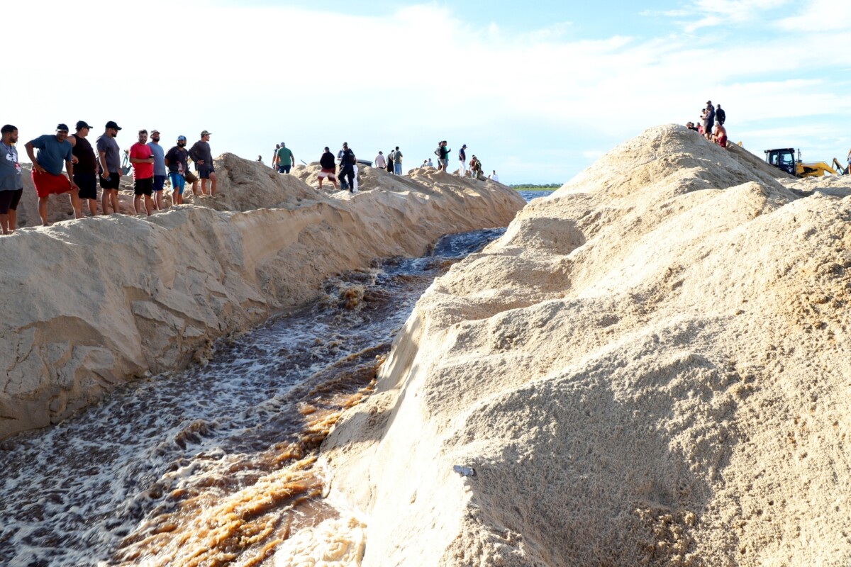 Já a segunda ação foi realizada em parceria com a Prefeitura de Carapebus, com a abertura da barra da Lagoa do Paulista, localizada na área de limite entre os dois municípios, dentro do Parque Nacional da Restinga de Jurubatiba.