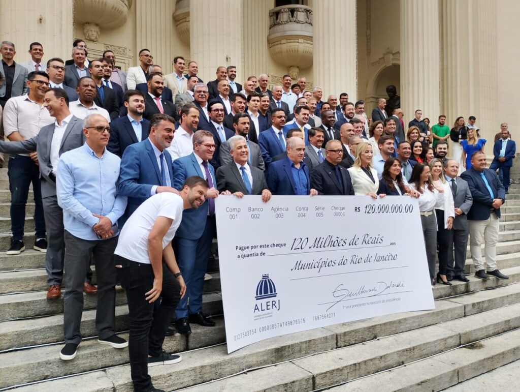 A Prefeitura de Quissamã participou, na sexta-feira (19), da solenidade realizada pela Assembleia Legislativa do Estado do Rio de Janeiro (Alerj) para a entrega dos cheques simbólicos referentes ao repasse de recursos economizados pelo Parlamento fluminense ao longo de 2025. O município esteve representado pelo prefeito Marcelo Batista e pelo chefe de Gabinete, Márcio Fernandes, que acompanharam a cerimônia no Palácio Tiradentes, sede histórica da Alerj, no Centro do Rio de Janeiro.